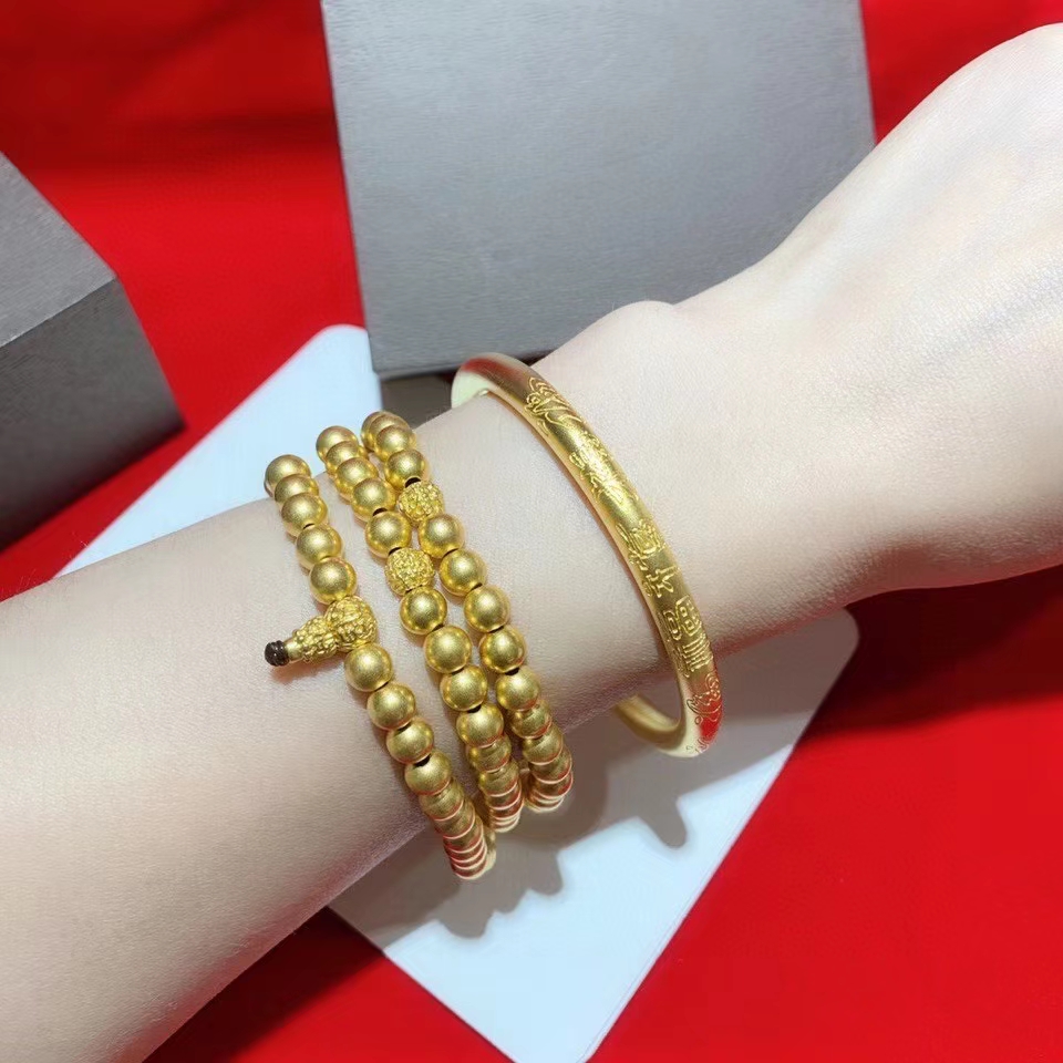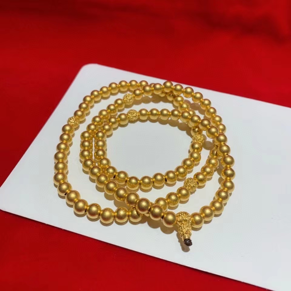 100克黄金回收鉴定足金999素金古法金珠珠链鉴定典当抵押图鉴,做手链、项链、108颗。
