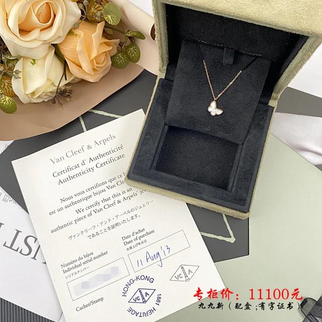 【珠宝首饰鉴定回收】购于2011年 VCARF69300九九新梵克雅宝ALHAMBRA四叶幸运系列18K黄金贝母Sweet Alhambra蝴蝶吊坠项链JB352562 链长39cm
