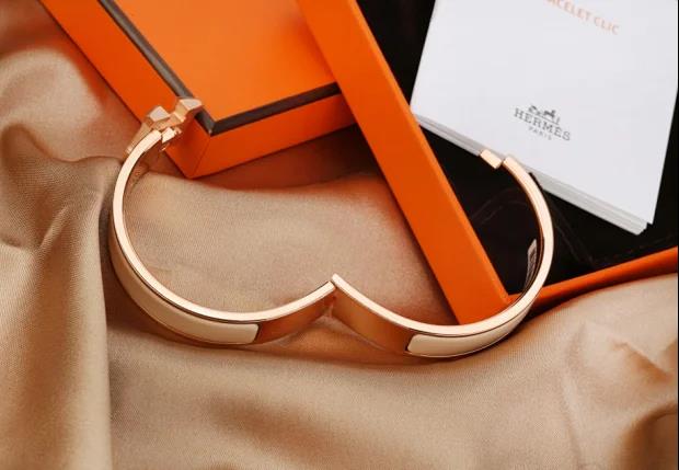 【爱马仕鉴定回收15251823366】未使用展示品Hermes/爱马仕镀金珐琅Clic H手镯回收价格查询
