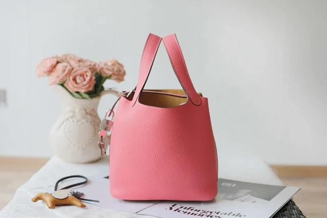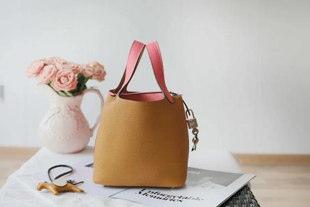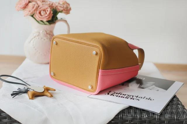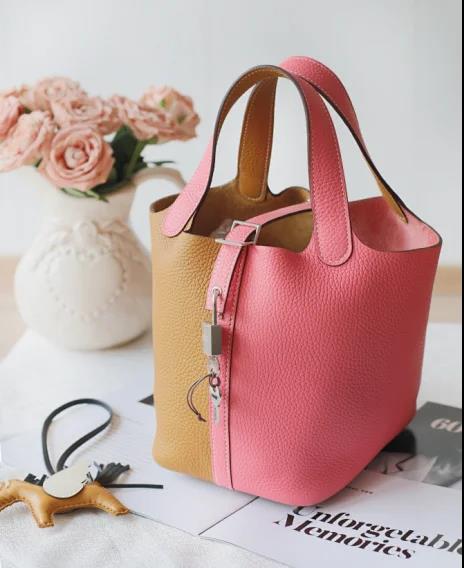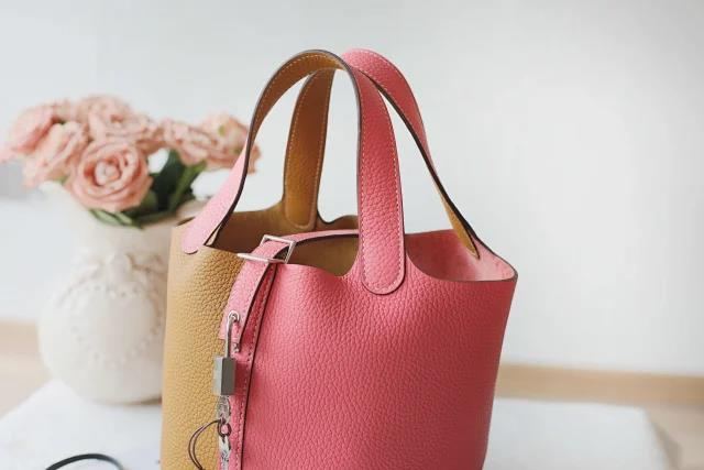 【爱马仕鉴定回收15251823366】Hermes/爱马仕Picotin Lock芝麻色/唇膏粉拼色银扣菜篮子水桶女包回收价格查询