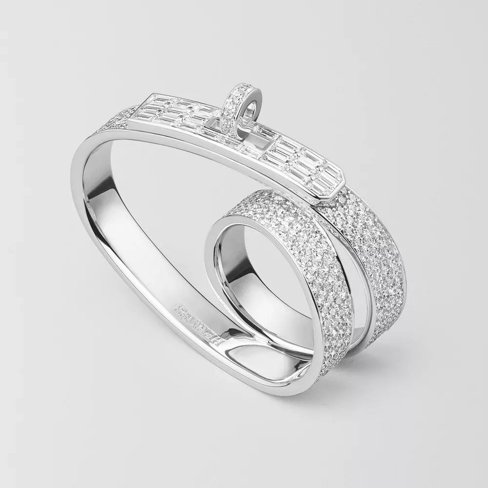 Kelly Gavroche 白金指间戒,by Hermès镶嵌长阶梯形切割和圆形切割钻石。