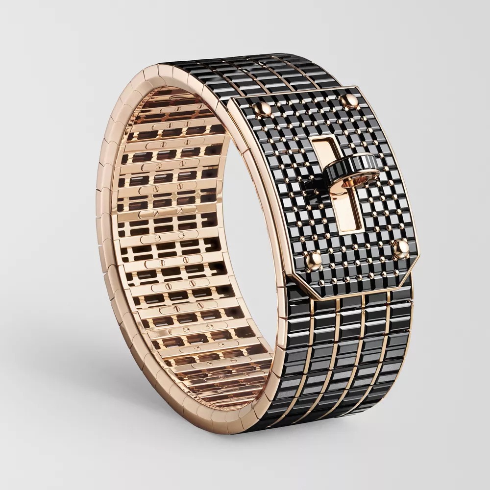 Kelly Baguettes 玫瑰金手镯,by Hermès镶嵌长阶梯形切割和方形切割黑色尖晶石。