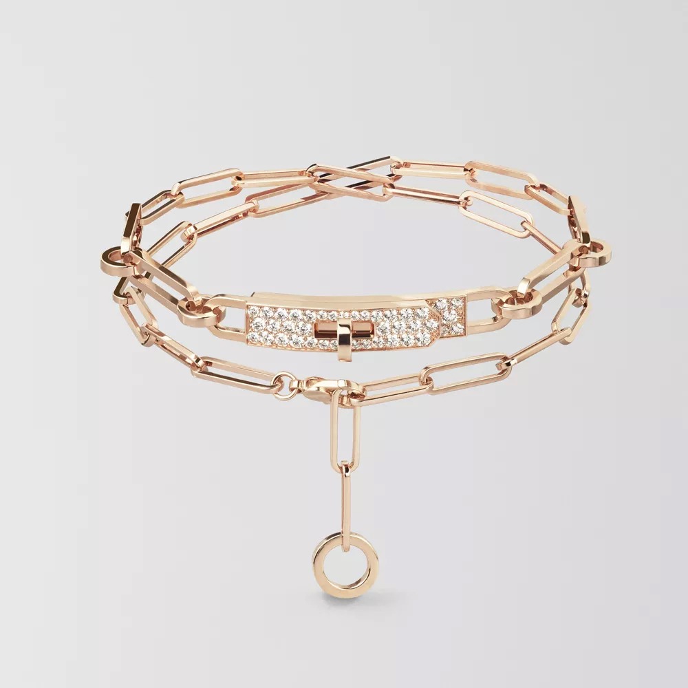 Kelly Chaîne 玫瑰金双圈手链,by Hermès镶嵌圆形切割钻石。