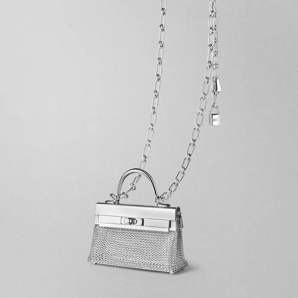 【首饰鉴定回收15251823366】Sac bijou Kelly 白金迷你手袋,by Hermès镶嵌圆形切割钻石。