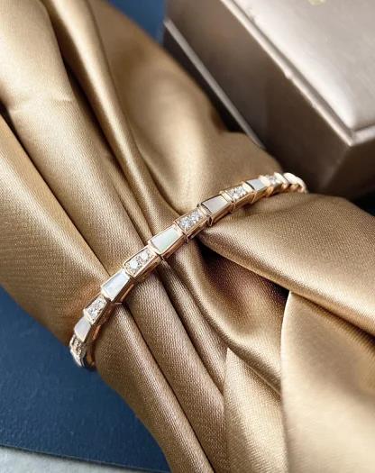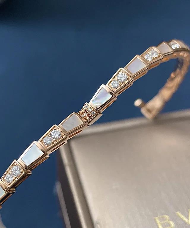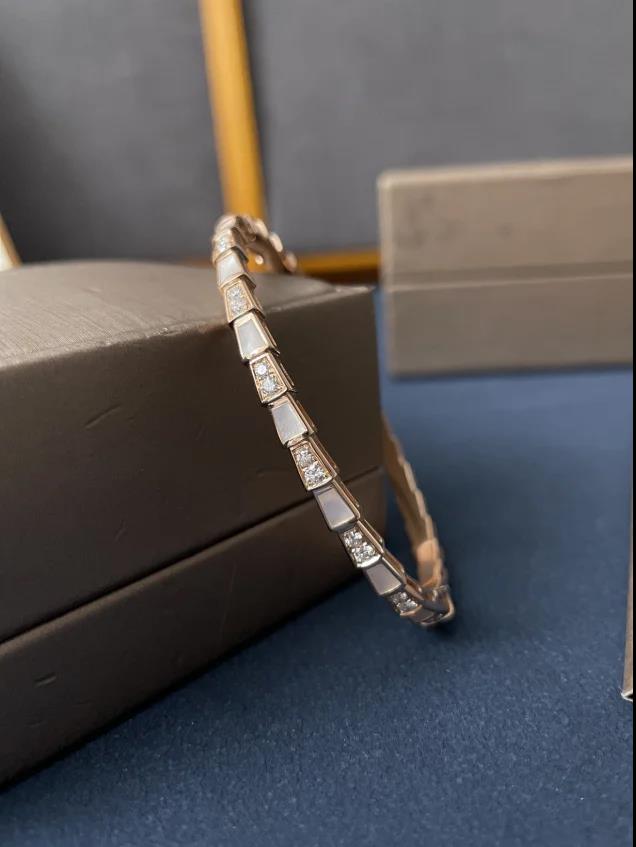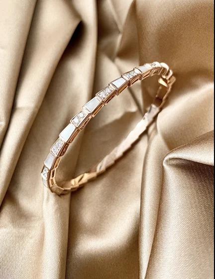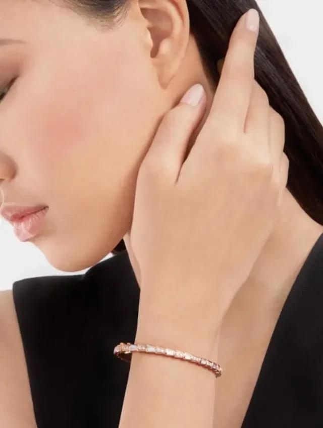 【宝格丽鉴定回收15251823366】SERPENTI VIPER系列18K玫瑰金/珍珠贝母镶钻手镯回收价格查询