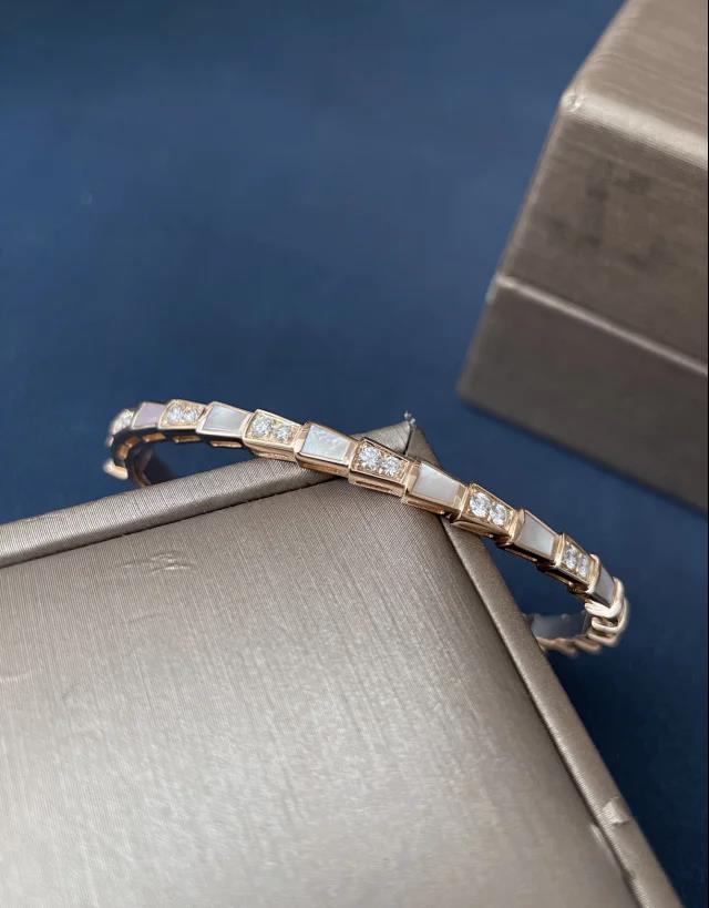 购于2020年11月BR858356九九新宝格丽SERPENTI VIPER系列18K玫瑰金/珍珠贝母镶钻手镯N92S7E 圈号:S
