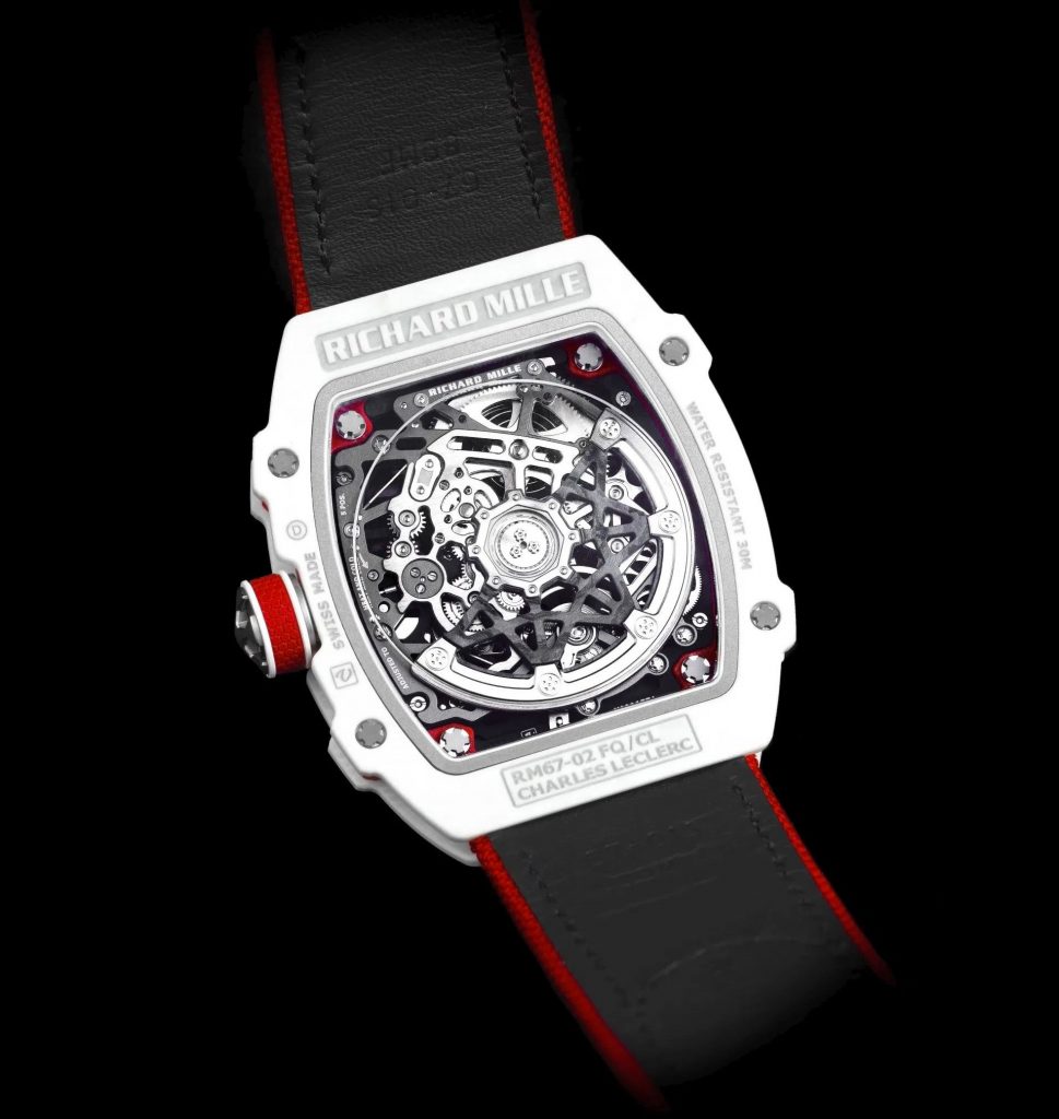 RICHARD MILLE 里查德米尔刚刚宣布为 Only Watch 2021 慈善拍卖推出一枚独一款腕表——「RM 67-02 Charles Leclerc Prototype」,这枚原型款腕表的重量仅有32g,曾由摩纳哥赛车手 Charles Leclerc 测试佩戴,红白相间的配色来自摩纳哥国旗。