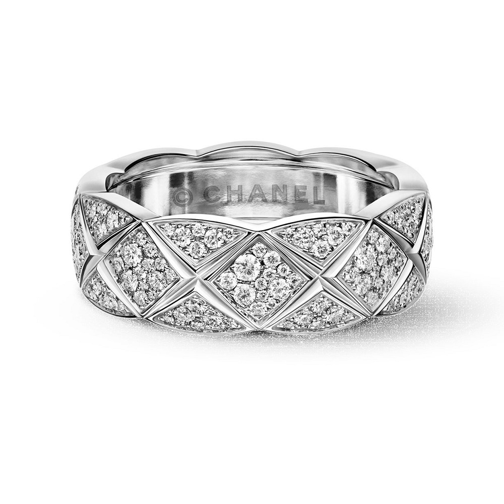 挺阔的皮具外形融入珠宝设计,温柔触感包容性别间的微妙差异。香奈儿CHANEL 以经典 2.55 手袋中的「Matelassé」菱格纹为灵感,结合圆模雕刻(Gadroon)与蚀刻(Incision)工艺,塑造出立体圆润的弧面和交错的格纹,菱格间铺陈闪烁的圆钻,与刻纹间的金属光泽相辉映,兼具前卫与率性气息。CHANEl Coco Crush 镶嵌圆形切割天然钻石白金戒指几折回收?