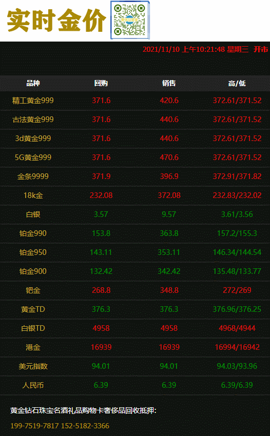 2021年11月10日#徐州奢侈品管家#金价早知道:黄金回收价格基本持稳,今日黄金回收/抵押/典当参考价371.6/克
