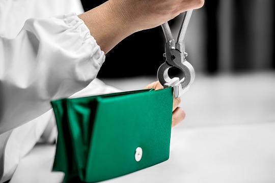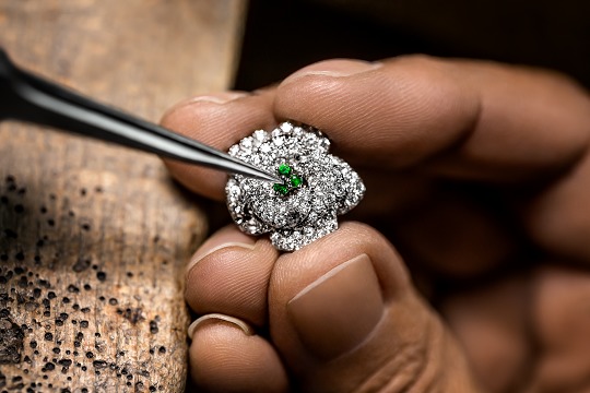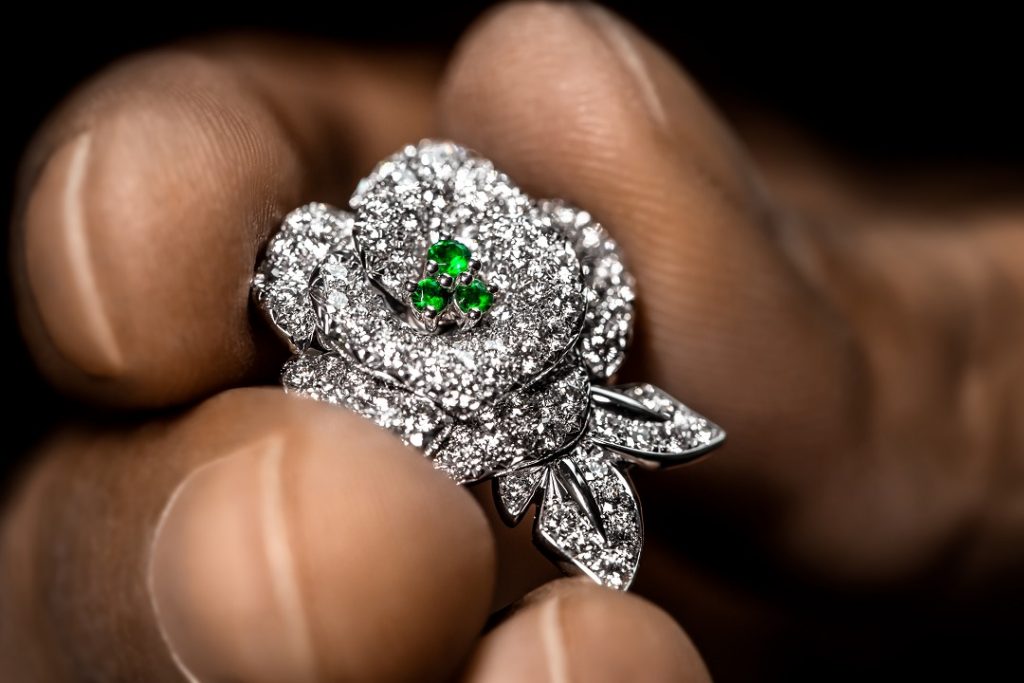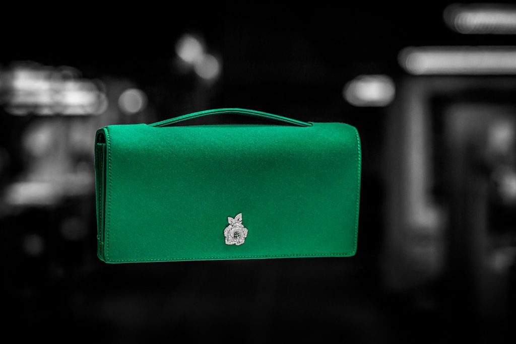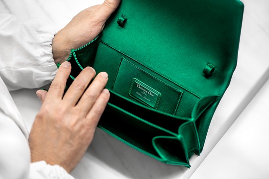 【名包回收鉴定】Dior 刚刚推出一件华丽的晚宴手包——「Gem Clutch」,由女装创意总监 Maria Grazia Chiuri 与高级珠宝部艺术总监 Victorie de Castellane 合作设计,巧妙融合皮具制作与高级珠宝工艺,绿色缎面与「玫瑰」包扣镶嵌的祖母绿华丽相映。「Gem Clutch」在包扣上巧妙融入「Rose Dior Bagatelle」珠宝系列的「玫瑰」元素,瑰丽而充满自然生机。这组高级珠宝系列为致敬 Christian Dior 钟爱的花卉特别创作,系列名源于巴黎 Bagatelle 湖区的玫瑰园。珠宝工匠以白金制作绽放的玫瑰,花瓣自然层叠,上方延伸出的2枚叶片上雕刻出精致的叶脉;花瓣上是华丽的钻石铺陈,独特的「密钉粒面镶嵌」工艺让镶座几乎隐形,突出钻石的闪耀火彩;花蕊则由3颗圆形切割祖母绿点缀,明媚的鲜绿色成为点睛。【名包回收鉴定】包包使用绿色绸缎制作而成,在晚宴灯光下反射出若隐若现的光泽,孔雀绿缎面与祖母绿花蕊形成呼应。修长简约的廓形让所有目光都聚焦在璀璨的玫瑰包扣。
