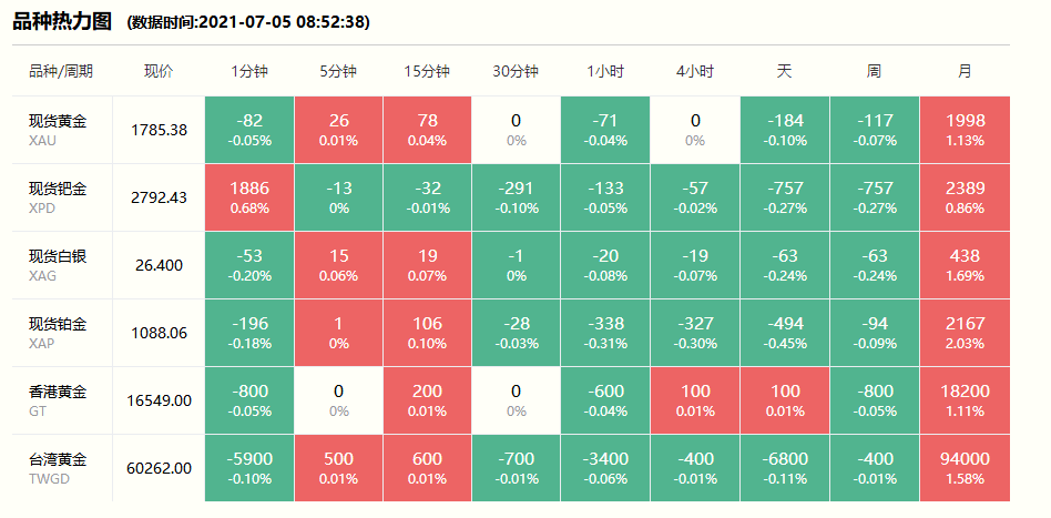 2021年7月5日#徐州奢侈品管家# 财经早餐:上周五,徐州现货黄金回收价格呈震荡上行趋势,一度站上1790关口。美盘时段,现货黄金跌回至1790关口下方。最终,现货黄金收跌0.16%,报1784.60美元/盎司;黄金市场的投资者也开始对欧佩克+会议感兴趣,因为围绕石油的不确定性可能对通胀产生重大影响,而通胀仍是推动黄金上涨的主要因素之一。