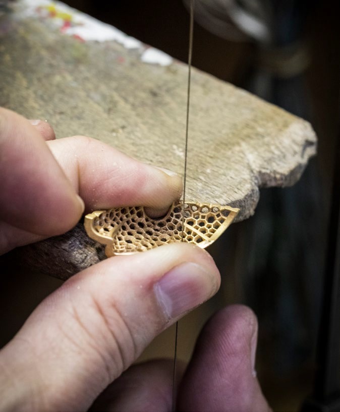 Bouton d'or 金质胸针回收价格查询,by Van Cleef & Arpels镶嵌绿松石、青金石和钻石。