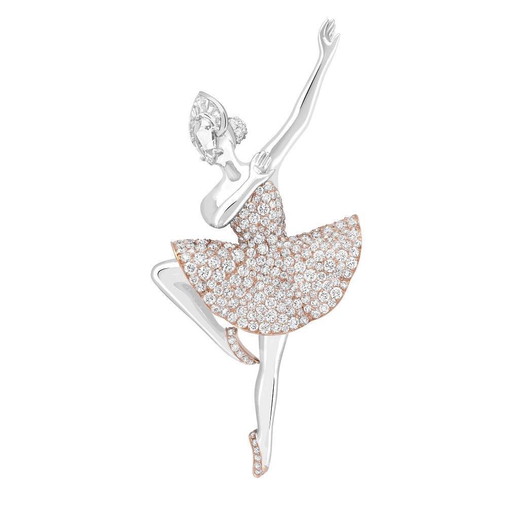 Dulcinea Ballerina 白金胸针回收价格查询,by Van Cleef & Arpels芭蕾舞伶面部镶嵌一颗水滴形玫瑰式切割钻石,点缀阶梯型切割和圆形切割钻石。