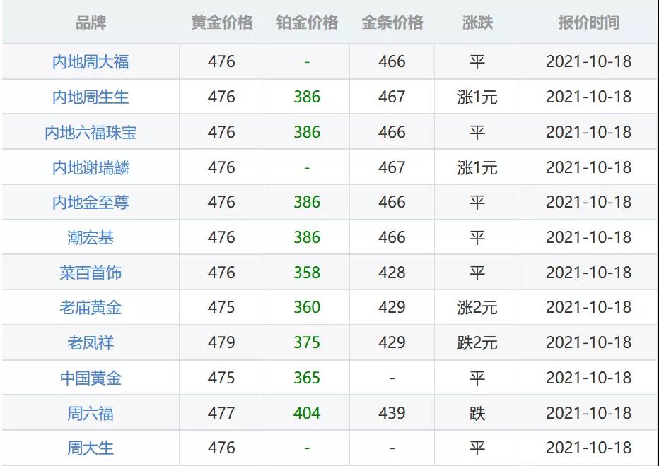 2021年10月19日9时53分:国际黄金回收典当抵押价格价格1771.48美元/盎司,国内黄金回收典当抵押价格价格367.90元/克,香港金价19000港币/两,黄金回收典当抵押价格价格362元/克,中国黄金回收典当抵押价格金价368/克,周大福黄金回收典当抵押价格价格476元/克(平),六福黄金回收典当抵押价格价格476元/克(平),周生生黄金回收典当抵押价格价格476元/克(涨1元),老凤祥黄金回收典当抵押价格价格479元/克(跌2元),老庙黄金今日回收典当抵押价格金价475元/克(涨2元),菜百黄金今日回收典当抵押价格价格476元/克(平),周大生回收典当抵押价格黄金价格476元/克(平),以上黄金回收典当抵押价格报价仅供参考,以店内为准。