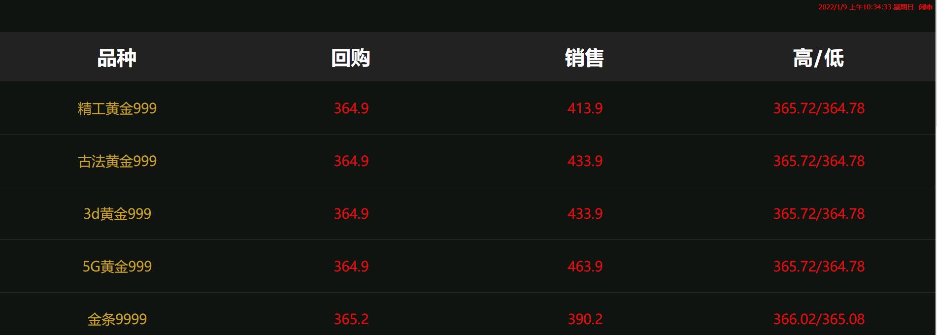 2022年1月9日#徐州奢侈品管家#黄金行情周评:徐州现货黄金回收价格本周下跌1.78%,终结此前的三连涨趋势,尽管12月非农数据再度爆冷,但美联储3月加息预期仍是市场共识,甚至缩表的时间也提上了日程,金价后市料将更加被动。1月8日黄金ETFs数据显示,截止1月7日全球最大的黄金ETF-SPDR Gold Trust的黄金持仓量978.83吨,较上一交易日减少1.75吨。