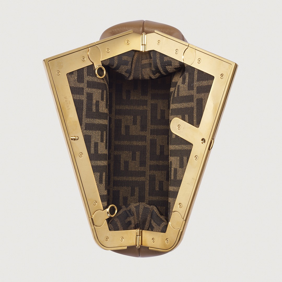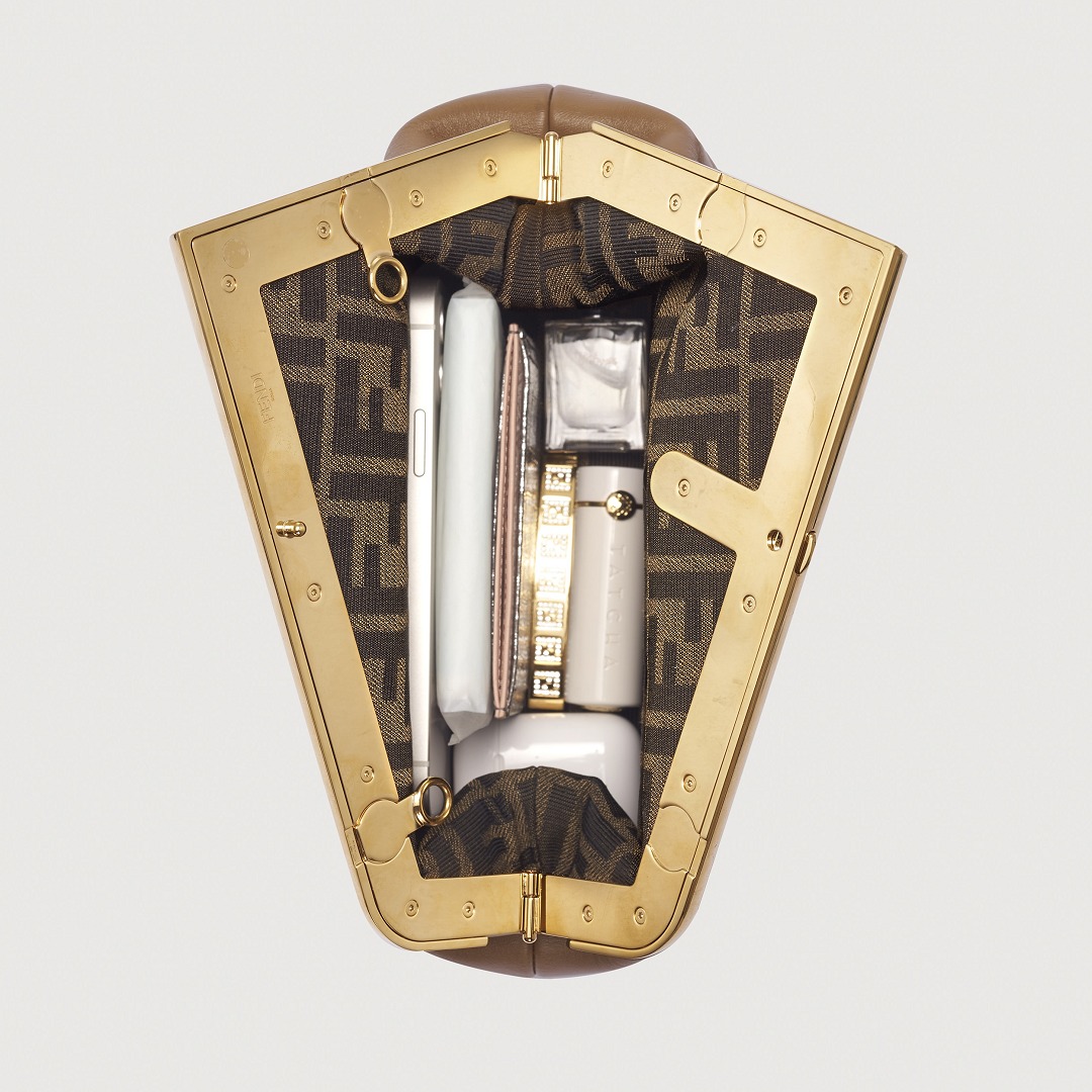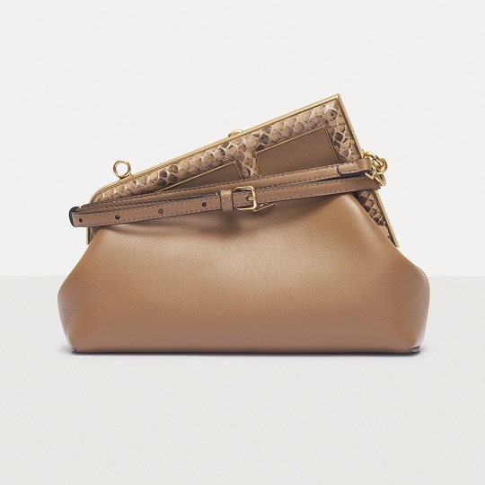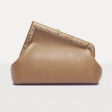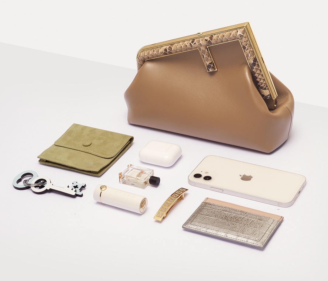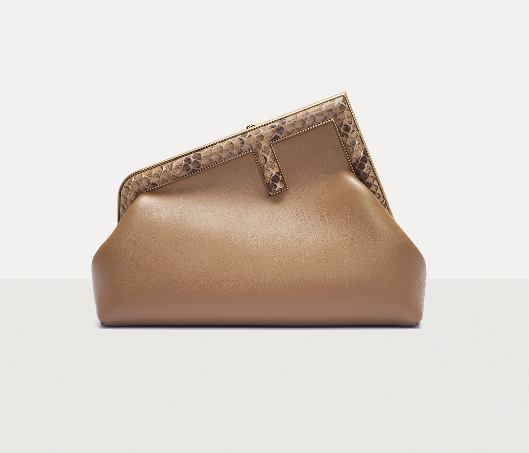 全新 FENDI First 手袋成为秀场上最重磅的配饰新品,由配饰总监、FENDI 第三代继承人 Silvia Venturini Fendi 设计。这款包包将凸显品牌特征的 F 字母以全新形态融入包型,柔软廓形与硬朗五金件形成鲜明对比,塑造出亦柔亦刚的风格,同时也将极简与奢华平衡得恰如其分。FENDI First 手袋首次亮相于 FENDI 2021秋冬秀场,采用柔软羔羊皮打造饱满云朵廓形,超大 F 型金属搭扣成为最吸睛的设计元素,为包包注入力量感和雕塑般的轮廓。「First」亦代表 FENDI 在新任女装艺术总监 Kim Jones 掌舵下开启的新旅程。