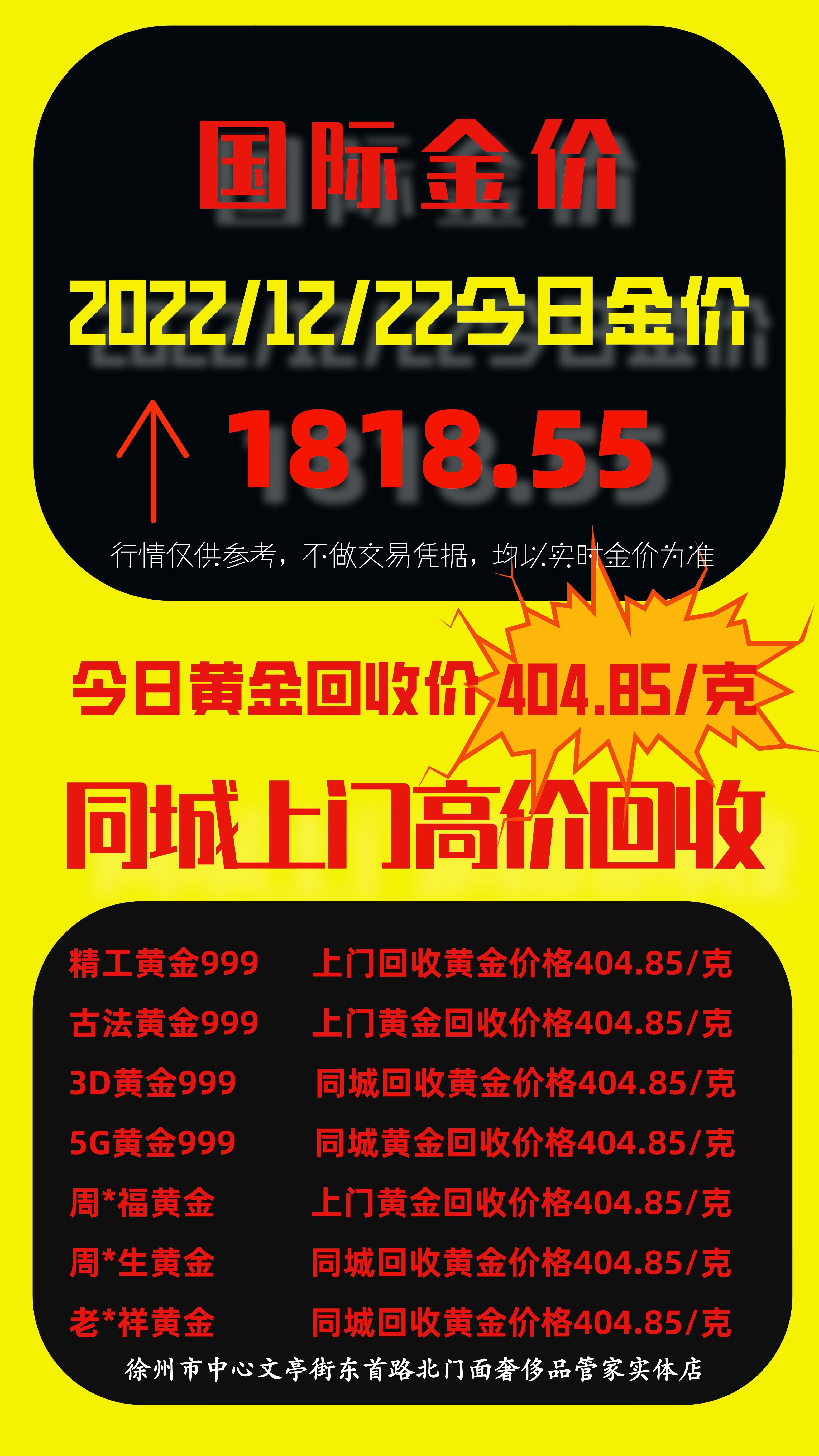 周四(12月22日)今日徐州萧县回收黄金价格多少钱一克? 发表评论 25,944 次浏览 A+所属分类:黄金回收 周四(12月22日)今日徐州萧县回收黄金价格多少钱一克?现货黄金回收价格在美盘前下逼1810关口,但在美盘初一度突破1820关口,最终收跌0.18%,报1814.64美元/盎司; 这是我的微信 可以发图在线询价,或者直接拨打电话:152-5182-3366/199-7519-7817咨询预约上门回收。