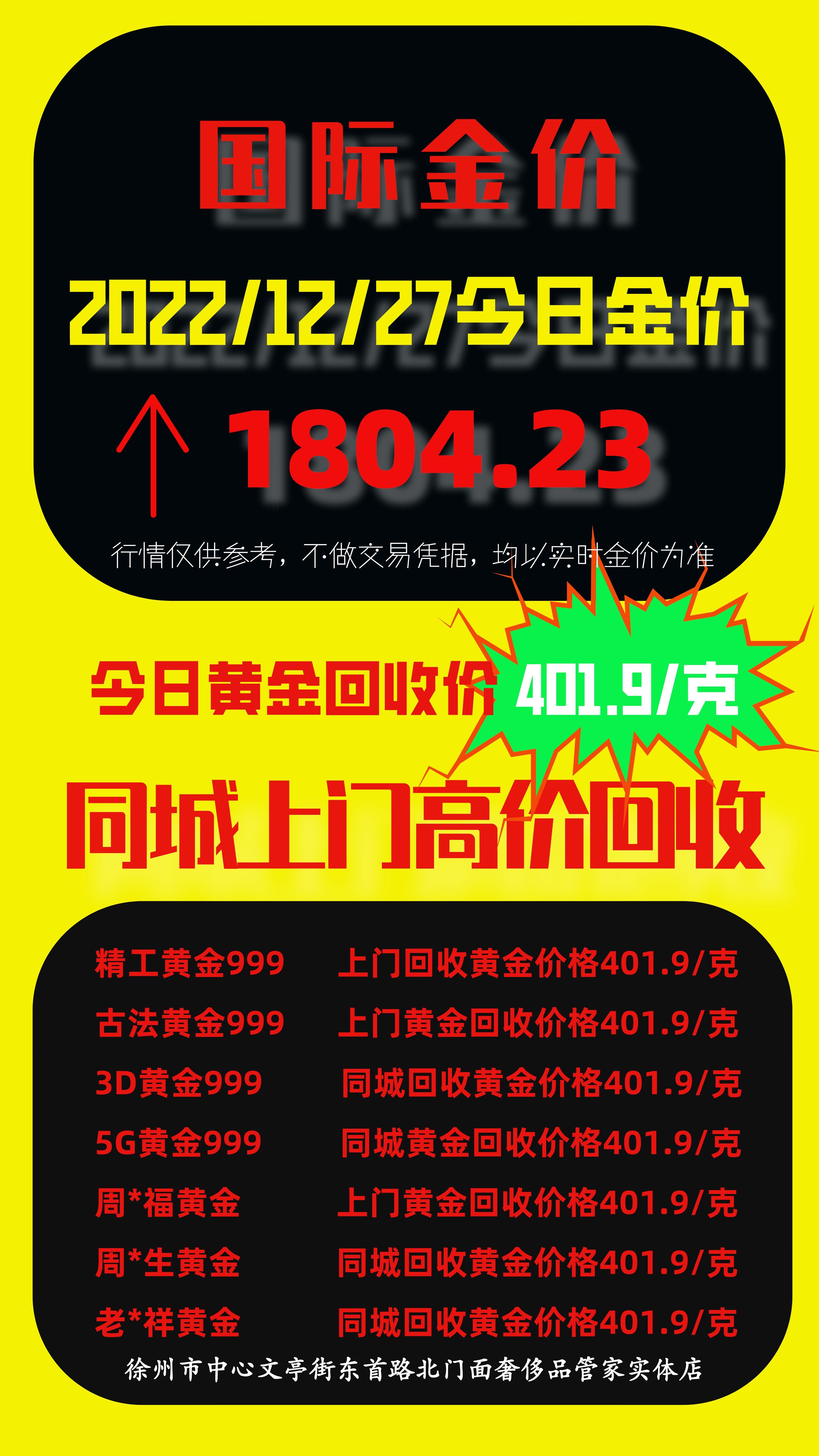 周二(12月27日)今日徐州萧县回收黄金价格多少钱一克? 发表评论 22,191 次浏览 A+所属分类:黄金回收 周二(12月27日)今日徐州萧县回收黄金价格多少钱一克?徐州今日现货黄金回收价格小幅走高,刷新两个交易日高点至1804.60美元/盎司,涨幅约0.39%。 这是我的微信 可以发图在线询价,或者直接拨打电话:152-5182-3366/199-7519-7817咨询预约上门回收。