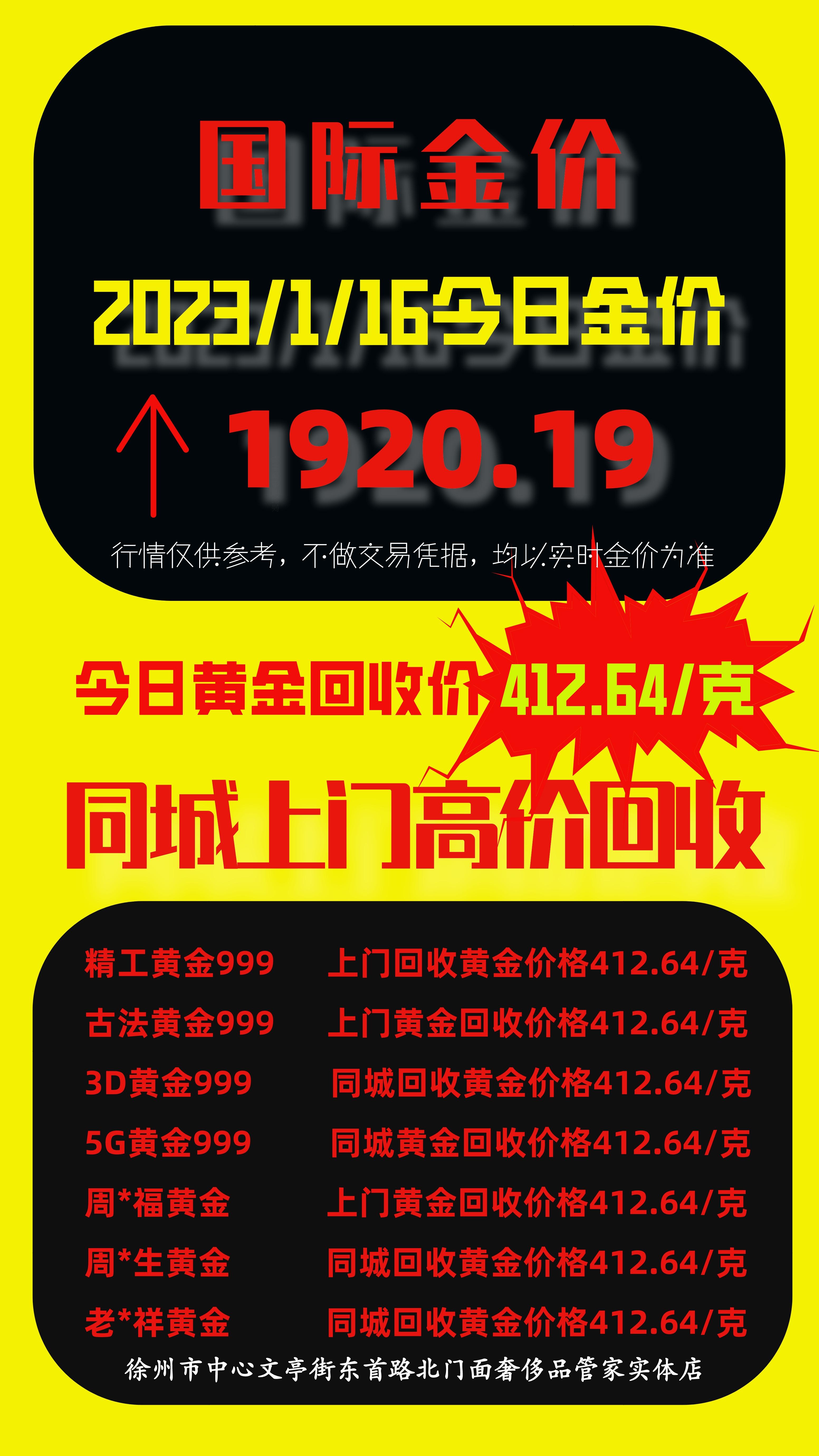 周一(1月16日)今日徐州萧县回收典当抵押黄金价格多少钱一克? 发表评论 38,589 次浏览 A+所属分类:黄金回收 周一(1月16日)今日徐州萧县回收典当抵押黄金价格多少钱一克?刚刚徐州现货黄金小幅冲高,刷新4月25日以来高点至1922.12美元/盎司。 这是我的微信 可以发图在线询价,或者直接拨打电话:152-5182-3366/199-7519-7817咨询预约上门回收。