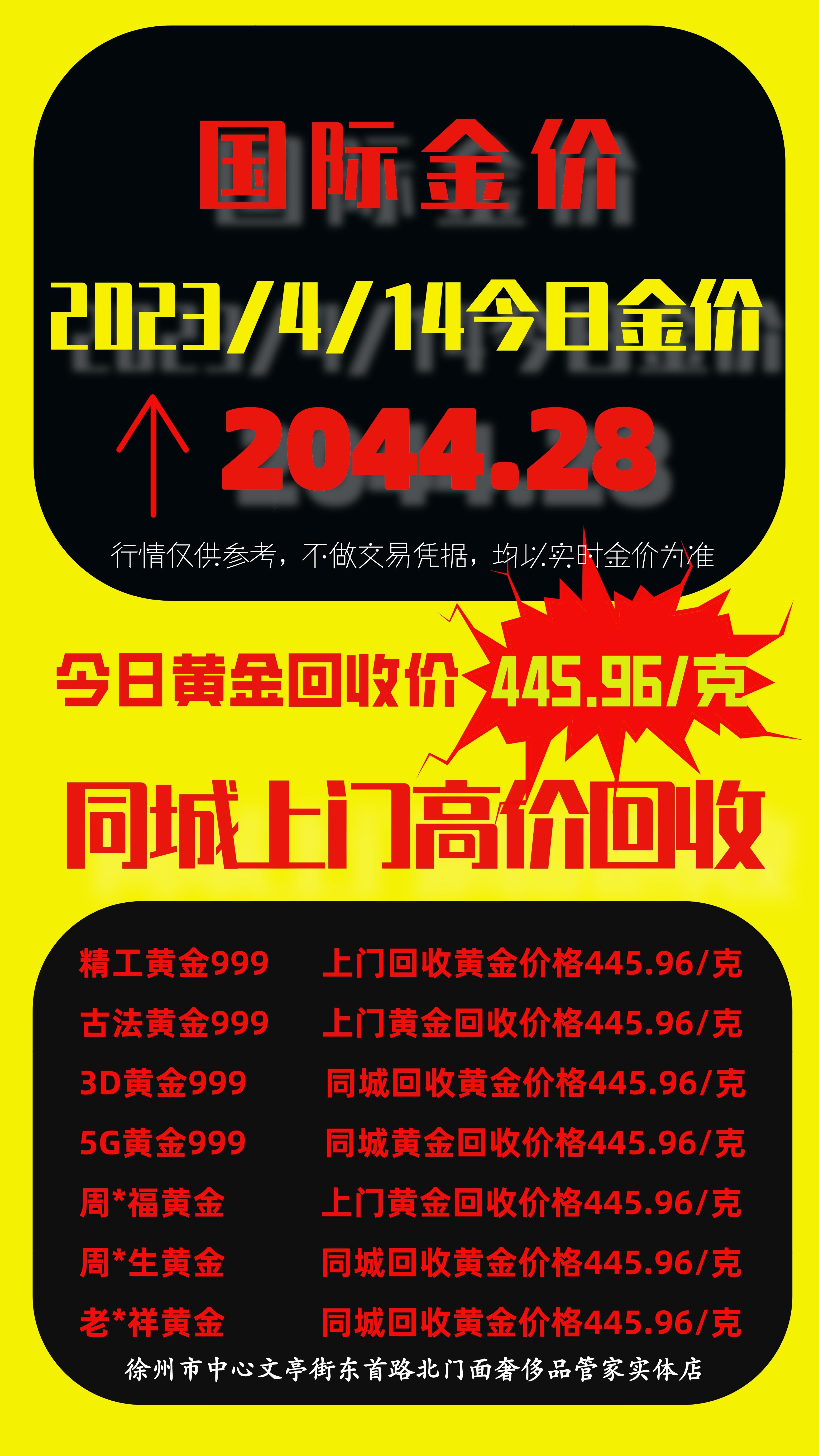 2023年4月14日(周五)今日徐州黄金回收抵押典当价格多少钱1克? 发表评论 29,002 次浏览 A+所属分类:黄金回收 2023年4月14日(周五)今日徐州黄金回收抵押典当价格多少钱1克?周四,因更多疲软的美国经济数据支撑了市场对美联储即将暂停加息的押注,现货黄金冲上2040美元关口,刷新逾1年新高,距离2020年创下的历史最高价还差约30美元,最终收涨1.25%,报2040.13美元/盎司; 这是我的微信 可以发图在线询价,或者直接拨打电话:152-5182-3366/199-7519-7817咨询预约上门回收。