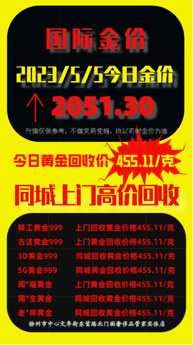 周五(5月5日)今日徐州黄金回收典当抵押价格多少钱一克?
